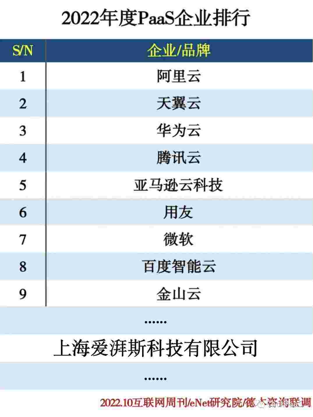 近日,,Internet Deep发布了由互联网周刊、、、、eNet研究院、、、、德本咨询联合调查的”2022年度PaaS企业排行“榜单,,,,上海爱湃斯科技有限公司(以下简称NO钱包),,,,凭借强大的建模能力,,,为各行业头部客户解决复杂业务需求的实践经验以及强大的集成扩展能力,,入选2022年度PaaS企业排行TOP 50。。