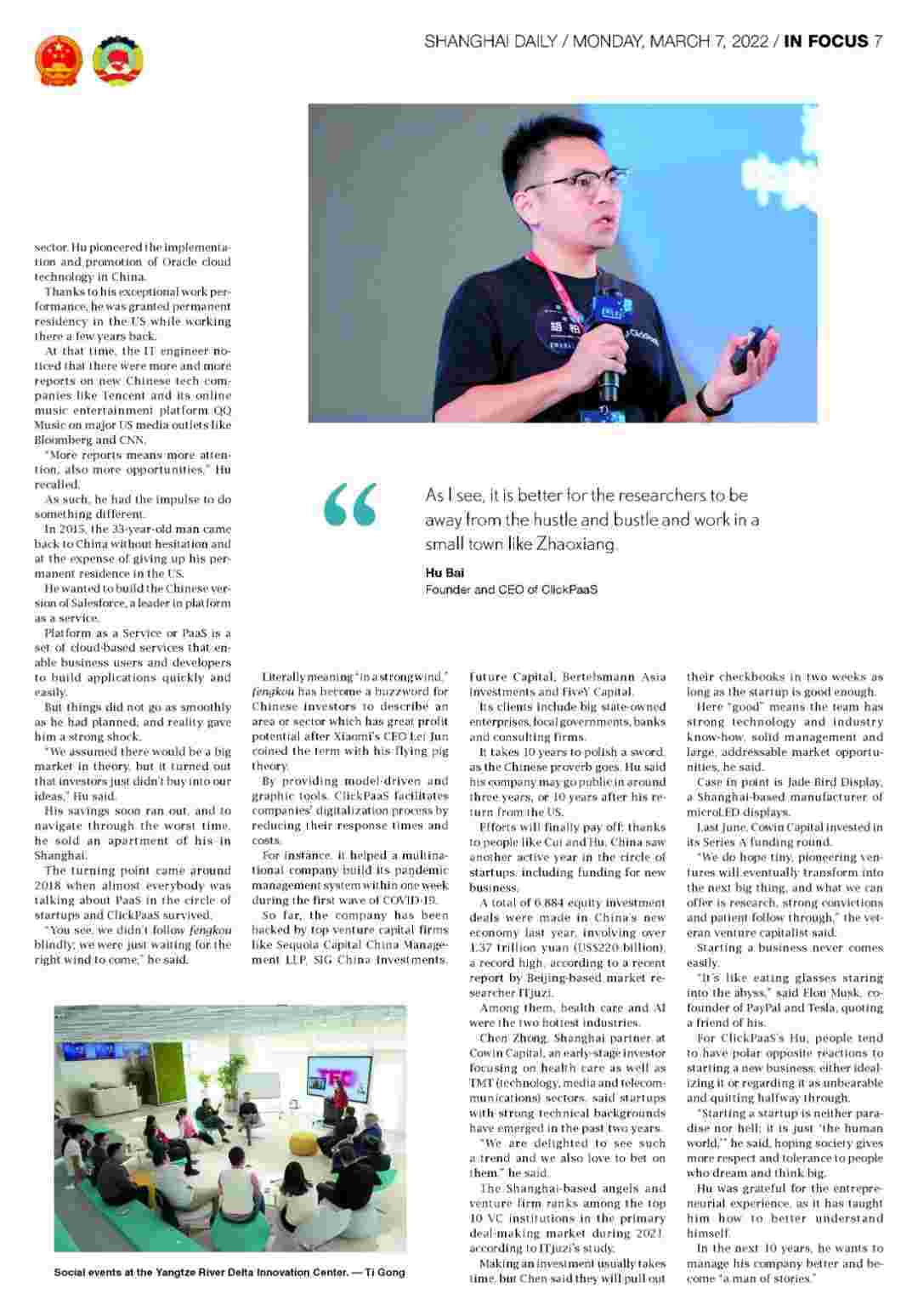 近日,,,,NO钱包创始人、、、CEO胡柏接受了《上海日报》采访,,关于自己当初为何选择创立NO钱包,,又为何将公司落户于上海青浦,,,,分享了其背后的故事。。。